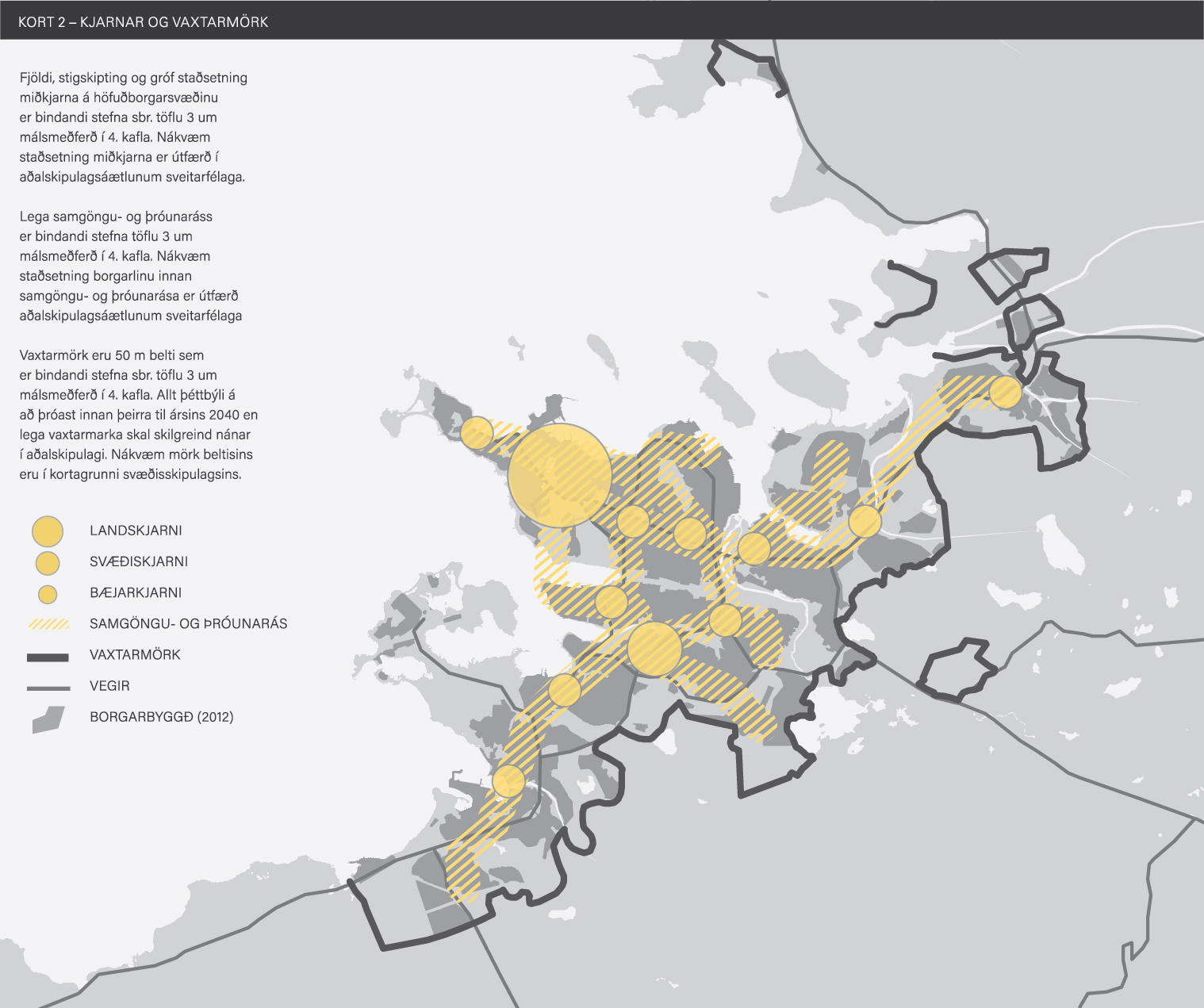 Þemakort 2. Kjarnar og vaxtamörk með breytingu